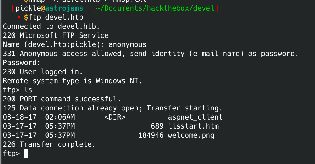 I've been doing some ethical hacking lately. This is my first writeup for one of the computers I hacked into (legally.) The machine I compromised is called Devel on Hackthebox.eu. I'm a beginner when it comes to ethical hacking, so please excuse my mistakes.
