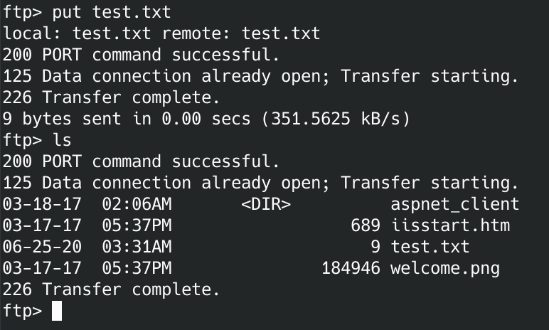 Looks like we've got IIS version 7 with the default page. Let's see if we can login to the FTP server with anonymous.