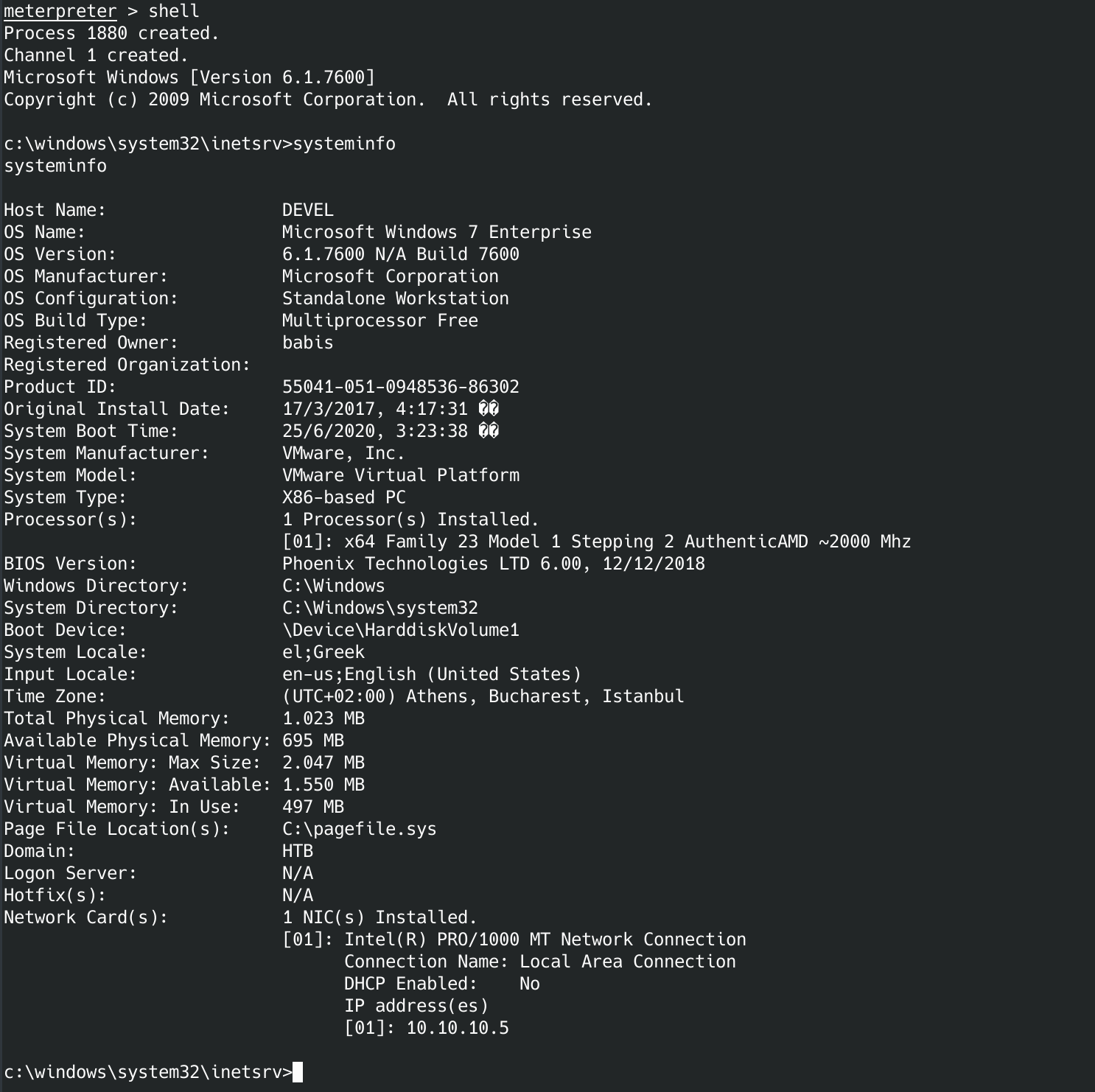 Let's go into the shell and use systeminfo to see if we can find some exploits.