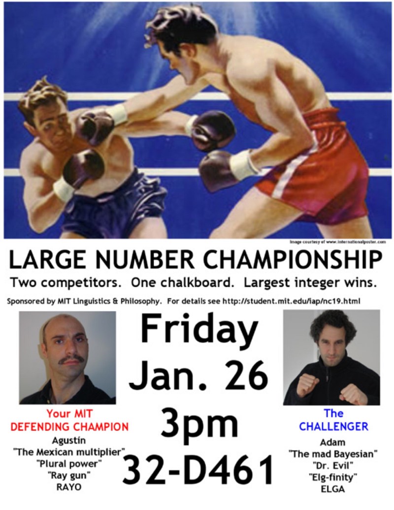A similar contest actually happened at MIT on January 26th in 2007. The event was created to get undergraduates interested in computational theory and it got me interested in big numbers. I actually blogged about it in an article that became one of the more popular articles on my blog but I digress.